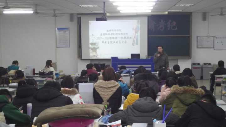 最后,张涛老师对毕业生寒假工作做了进一步安排,以亲身经历为同学们讲述正确就业的重要性,从就业推荐表、实习鉴定表、实习工作安排、就业服务卡、考研复试准备等方面做了详细介绍。