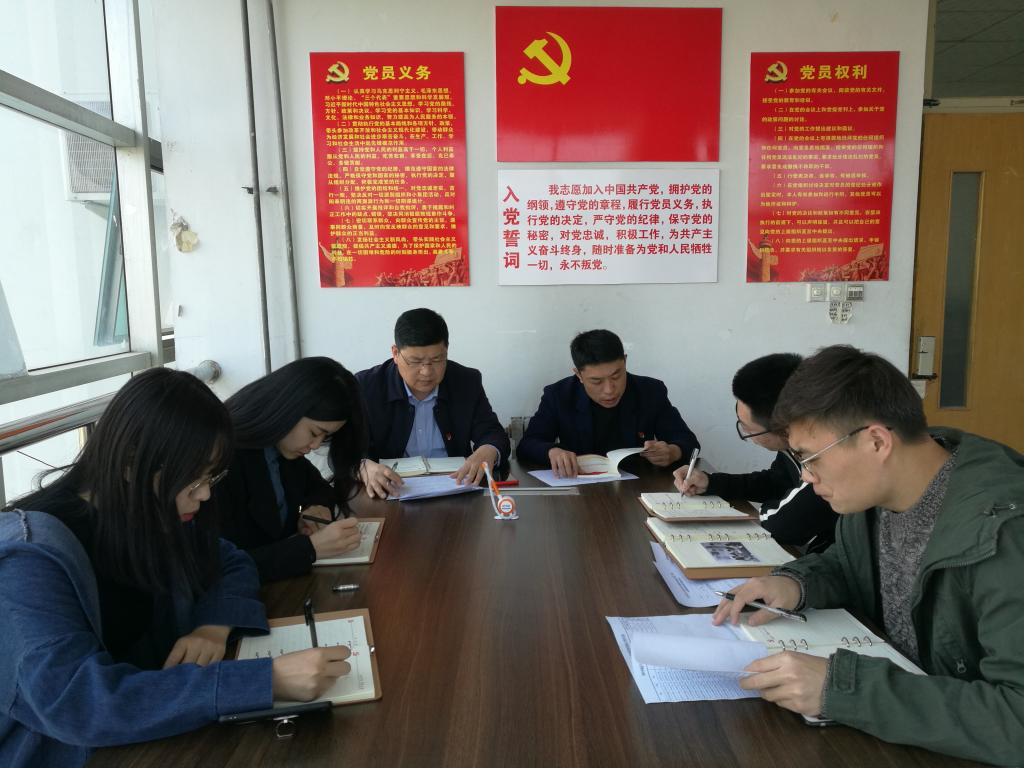 4月3日下午,bat365官网登录入口各党支部分别开展主题党日活动,集中学习《党政领导干部选拔任用工作条例》、《发展党员和党费工作操作规程》,主题党日由各支部书记主持。