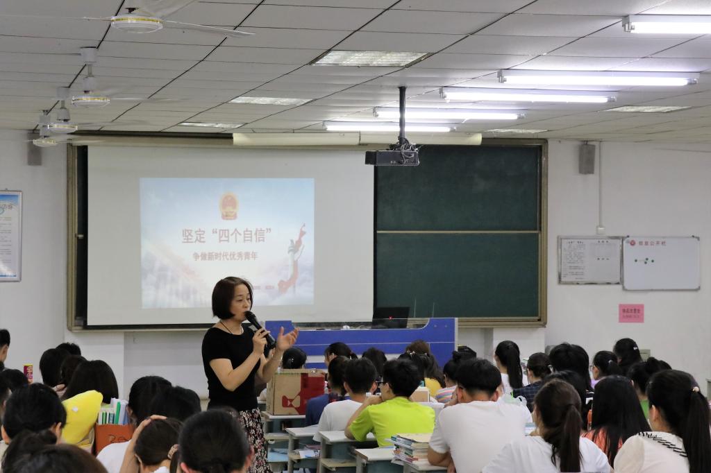 理论课以“坚定‘四个自信’,争做新时代青年”为主题。讲解了“四个自信”形成的理论基础、思想渊源;形成发展的历史路径;内涵与意义以及怎样进一步增强“四个自信”。重点详细解读了“四个自信”中的“文化自信”,从习近平总书记为何重视文化自信、“文化自信”的底气何在、提高文化软实力事关国运、文化自信是“四个自信”的坚固底色四个方面进行论述说明。