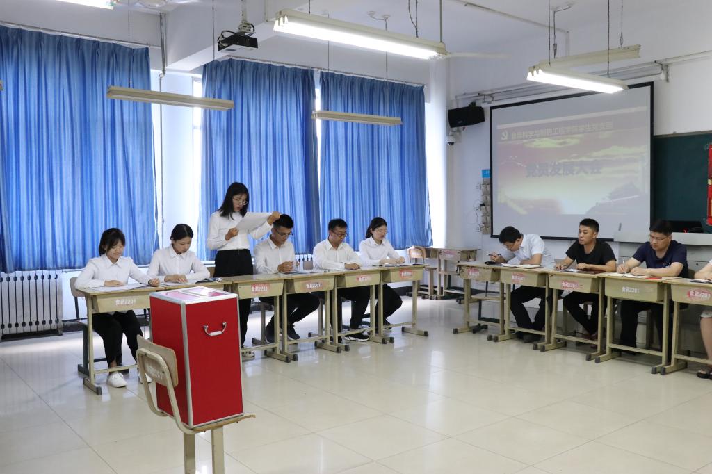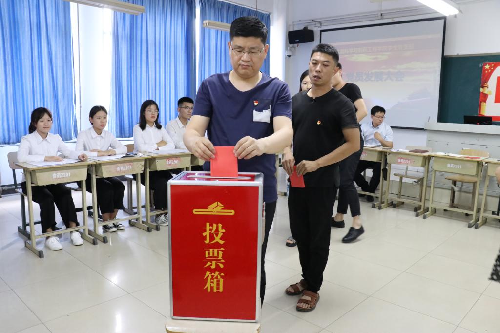 孙星代表学生党支部介绍6位同志的培养、政审、公示等情况,党员大会进行讨论,与会同志充分发表意见并进行票决。票决后,孙星宣读表决结果和支部大会讨论情况,会议一致同意接收步寰宇等6名同志为中国共产党预备党员。孙星希望各位新发展党员能够进一步发扬自身优点,努力克服自身不足,充分发挥党员的模范带头作用,争做一名合格的党员。步寰宇同志作为新发展党员代表作表态发言。