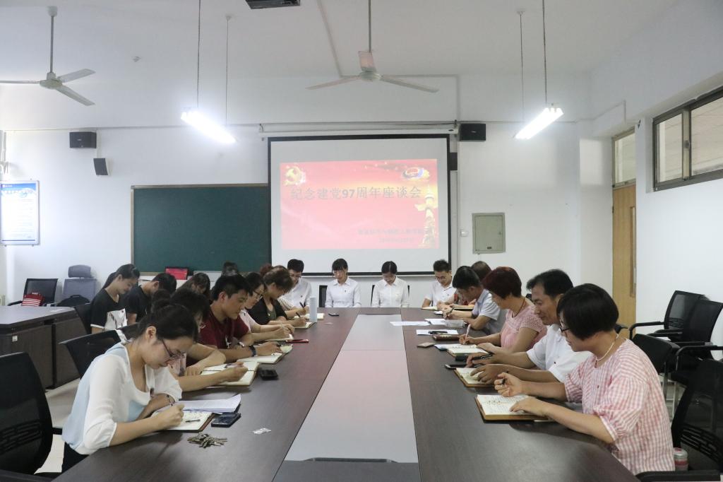 6月28日,bat365官网登录入口在理工楼301室召开纪念中国共产党成立97周年座谈会。学院全体党员参加座谈会,会议由院党总支书记戴恩冰书记主持。