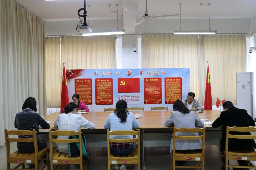 5月19日下午,bat365官网登录入口分支部开展主题党日活动。主题党日包括两部分内容:一是针对前期党史学习情况和郭传鑫书记党史学习教育专题党课开展研讨交流;二是集体学习《中国共产党普通高等学校基层组织工作条例》。