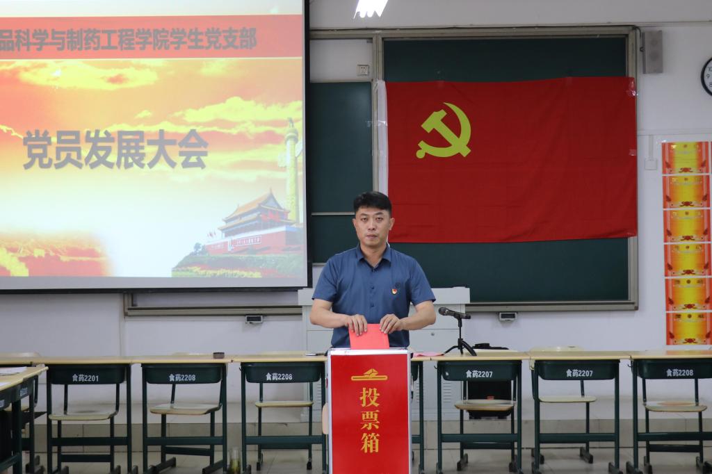孙星代表学生党支部介绍26位同志的培养、政审、公示等情况,支部大会进行讨论,与会同志充分发表意见,最后针对这些发展对象是否符合入党的要求与标准,与会正式党员进行无记名投票表决。票决后,孙星宣读表决结果和支部大会讨论情况,大会决定彭慧等26名同志顺利通过培养期考察,正式被党组织吸收为中共预备党员。