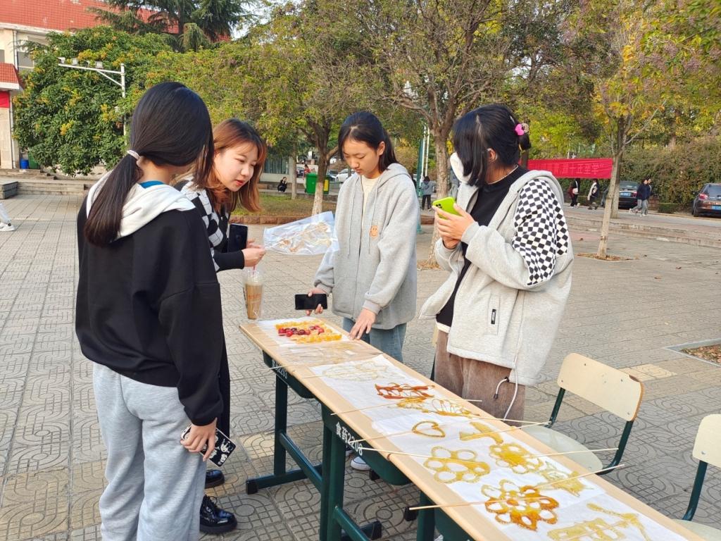 为丰富校园生活,培养兴趣爱好,扩大求知领域,促进学生身心健康,增加学生对社团文化活动的了解。10月26日下午,bat365官网登录入口食尚团、溢彩糖画社、本草社三个社团在五四青年广场开展了户外文体娱乐活动,2021级全体学生参加了此次活动。