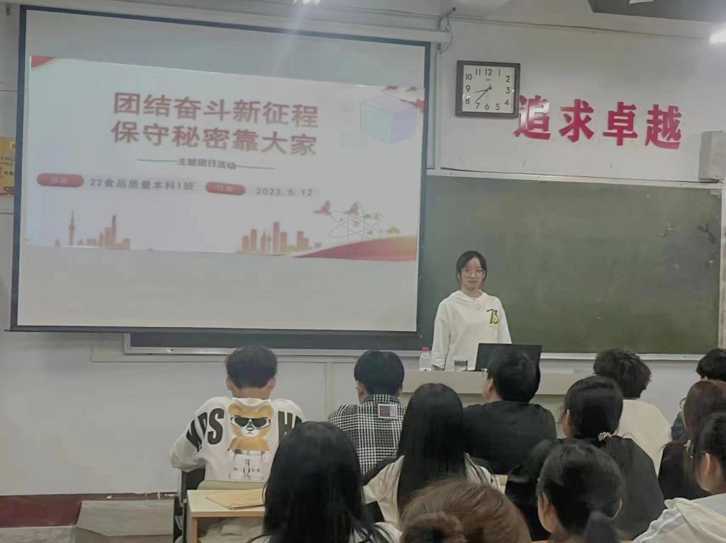 班会上,各班团支部书记紧紧围绕“团结奋斗新征程,保守秘密靠大家”主题,将保密工作的开展与个人安全、社会安全和国家安全紧密结合,利用PPT宣讲、宣传片播放、主题交流讨论等多种形式带领同学们学习秘密保护相关法律知识,加深同学们对保密工作复杂形势和保密安全的了解。从学生的视角解读保守国家秘密的重要性与必要性,居安思危,清醒感知变幻莫测的时代风云,筑牢保密工作的人民基层防线。