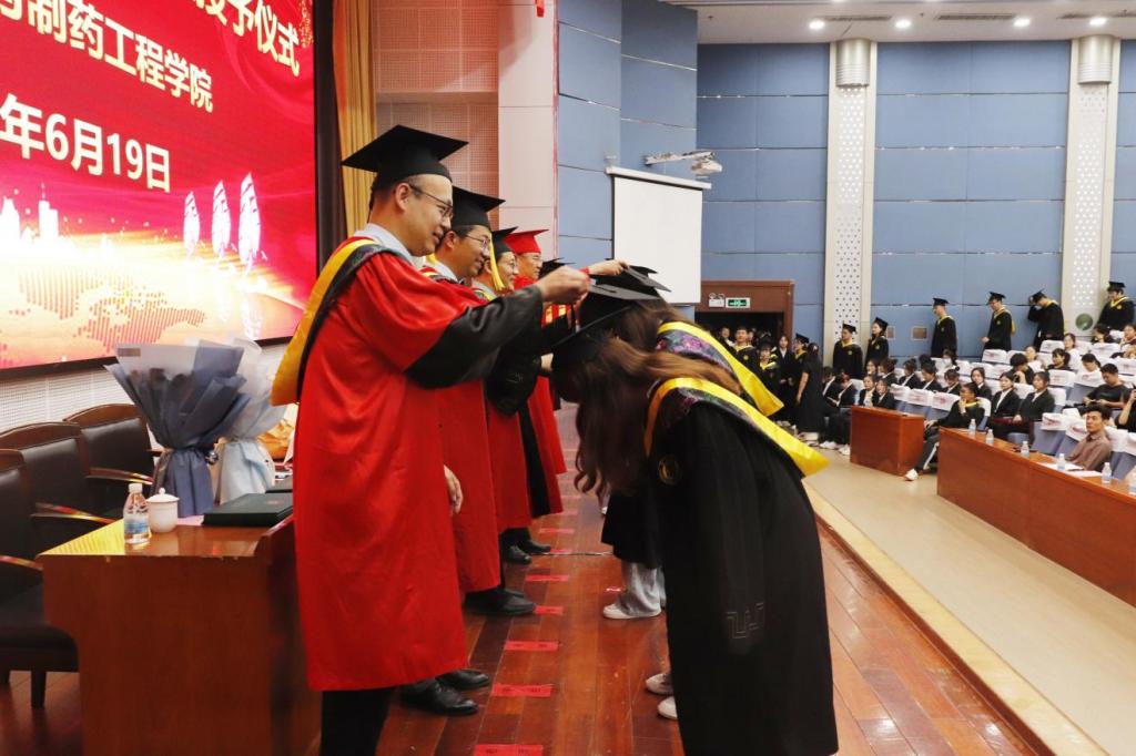 典礼上领导与毕业生亲切握手,为全体优秀毕业生一一拨穗正冠,颁发学士学位证书,并为毕业生们送出殷切期望和祝福,希望毕业生们始终保持对知识的渴望、对生活的热爱以及对梦想的追求。