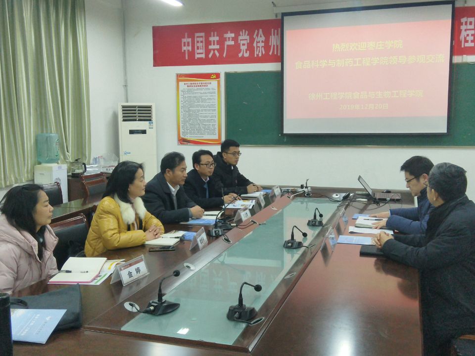 12月20日,bat365官网登录入口党总支书记戴恩冰、副院长张立华及各专业负责人、教研室主任一行6人组成调研组前往徐州工程学院考察食品科学与工程专业认证准备工作。