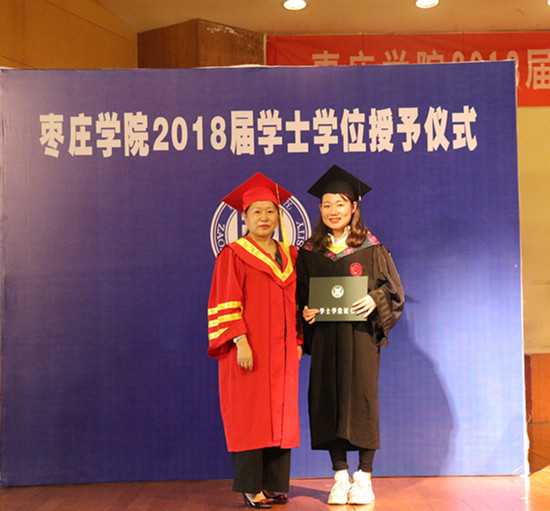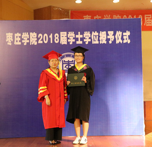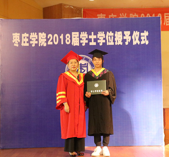 学士学位授予仪式上,学院85名毕业生身穿学士服,伴着欢快的乐曲,依次有序地走向主席台,深情地向各位领导、老师鞠躬,感谢母校和老师四年来的辛勤培育。李丽清校长亲切地与毕业生握手,帮他们扶正流苏,为他们颁发学位证书,并与毕业生合影留念。