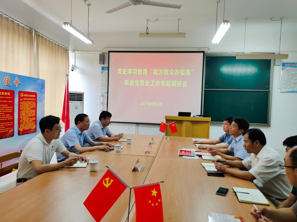 6月10日上午,校党委副书记、校长李文喜到bat365官网登录入口调研指导毕业生就业工作。校招生就业处处长周磊、副处长颜伟强陪同调研,学院领导班子成员和毕业班辅导员参加会议。
