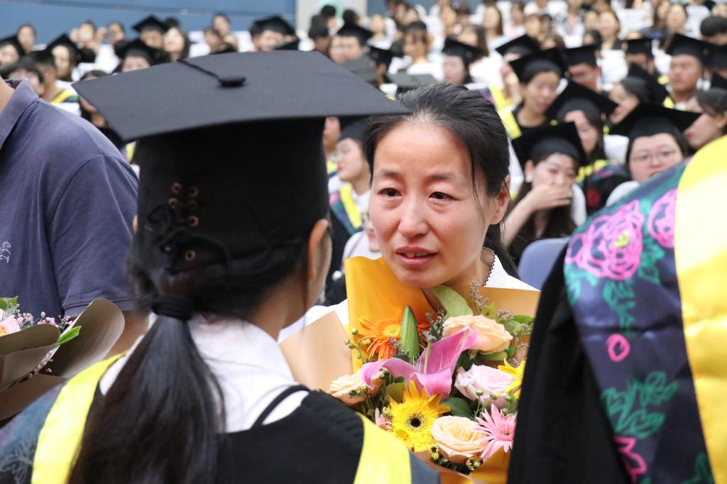 教师代表张沛老师为毕业生送去深深的祝福和殷切的期许,祝福毕业生在今后的日子里一路顺风,一马平川,一路高歌!她表示,完成阶段性学业只是“万里长征走完了第一步,以后的路程更长,工作更伟大,更艰苦”,希望全体毕业生能够坚定理想信念,恪守真善美的准则,求真务实,奋斗不息,不断提升学习力,保持学习的激情,不畏挫折,争创佳绩。