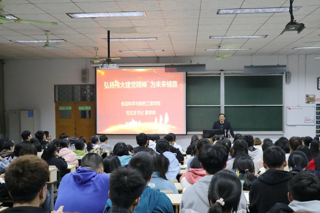 滕聿峰讲到,在长期的奋战、建设、发展和实践中,我们党形成了坚持真理、坚守理想,践行初心、担当使命,不怕牺牲、英勇斗争,对党忠诚、不负人民的伟大建党精神,这是中国共产党的精神之源,是中国红色文化的起点,更是指引着我们迈向第二个百年奋斗目标新征程的纲领性文件。作为新时代的大学生,要坚定理想信念,大力弘扬光荣传统、赓续红色血脉,把伟大建党精神永远继承下去、发扬光大。要从伟大的建党精神中,汲取智慧和力量,学好本领,立国志、报国行,勇做堪当民族复兴大任的时代新人。引导同学们在学会做人中,坚持贵在清白,立志做一个德才兼备的人;在做事中,注意培养综合能力,学会理解别人、尊重别人、包容别人;在做学问中,敢于好高骛远,善于实事求是;在困难、挫折面前,要学会面对、敢于承受、勇于战胜和克服。要时刻绷紧安全意识这根弦,保护好自己,在严防严守中筑牢安全底线。