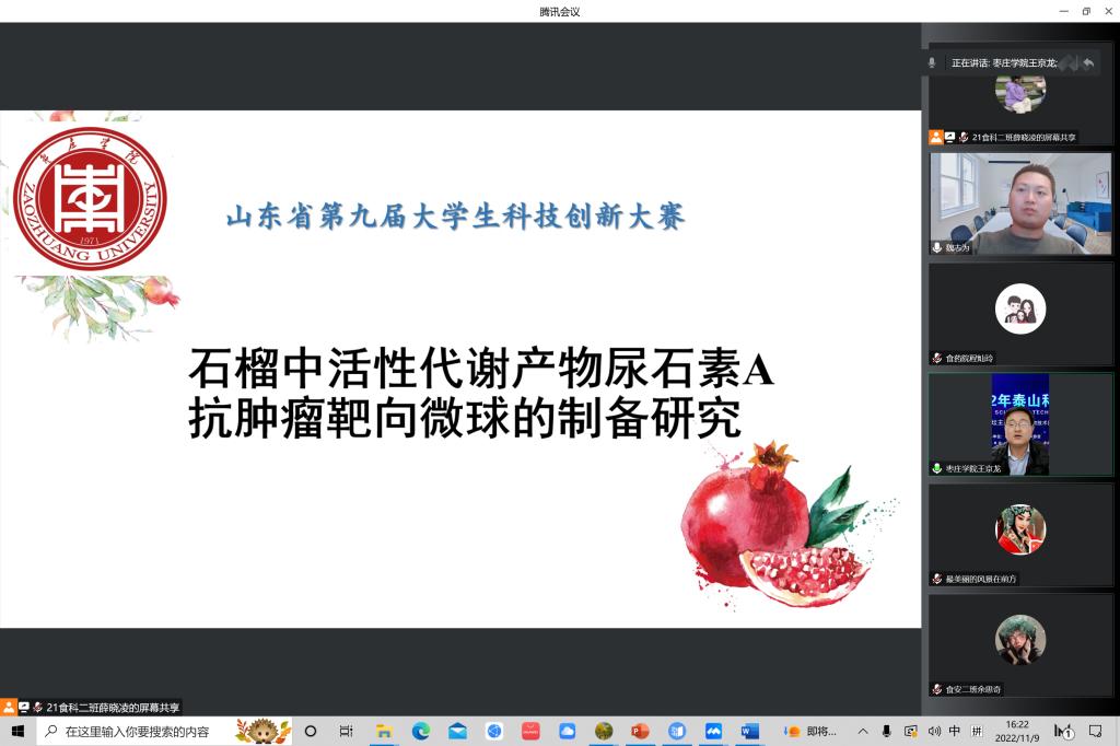 为鼓励支持大学生开展科技创新活动,展示大学生科技创新成果,培养大学生直面问题、解决问题的本领,培养创新创业应用型人才,按照《关于举办枣庄学院第九届大学生科技创新大赛的通知》要求,近日,bat365官网登录入口线上组织了枣庄学院第九届大学生科技创新大赛院级选拔赛。