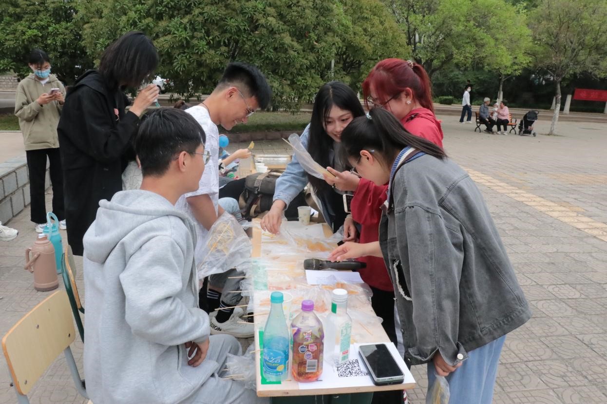 为营造积极向上、和谐健康的校园艺术文化氛围,培养学生团结协作,关注健康的精神,增加学生对社团活动的了解。bat365官网登录入口于5月10日下午在五四青年广场举办了“健康人生,饮食宣讲”大学生科技文化节活动。食尚团、溢彩糖画会、本草社三个社团共同承办此次活动。