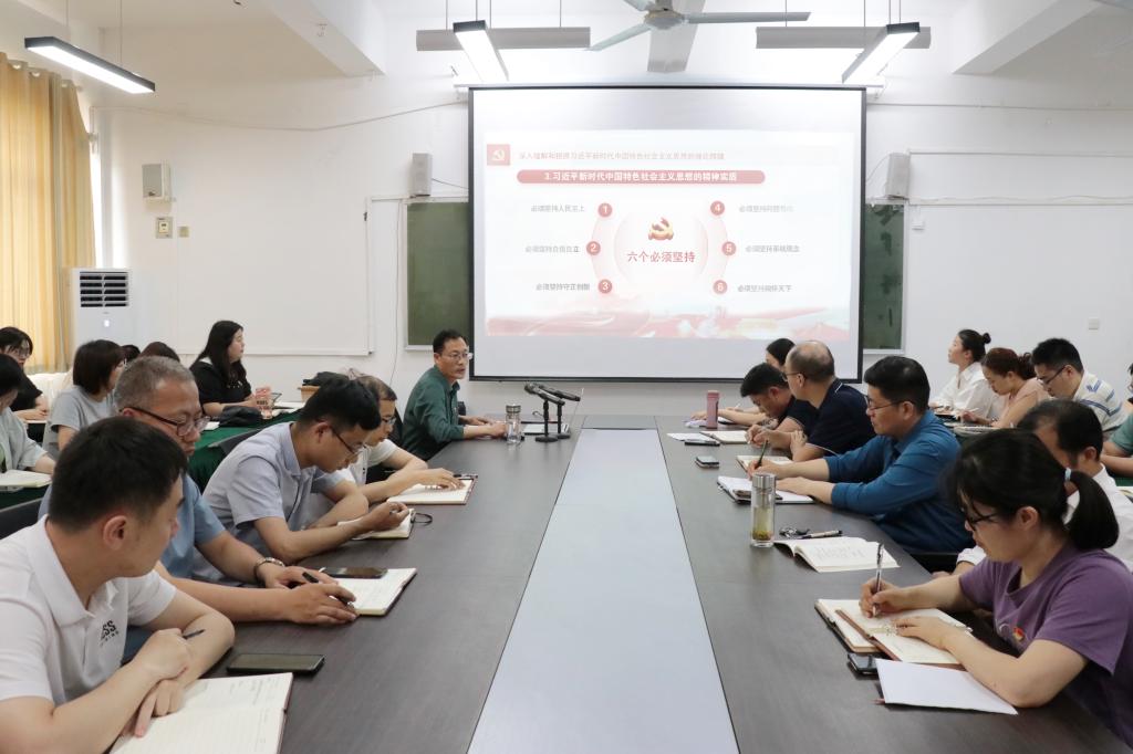 为推进主题教育走深走实,按照学校“三个一百”主题教育专题党课工作安排,6月7日下午,bat365官网登录入口党总支书记滕聿峰在文科楼213会议室为全院师生党员讲授以《在主题教育中,领悟和把握习近平新时代中国特色社会主义思想的理论精髓》为题的主题教育专题党课。