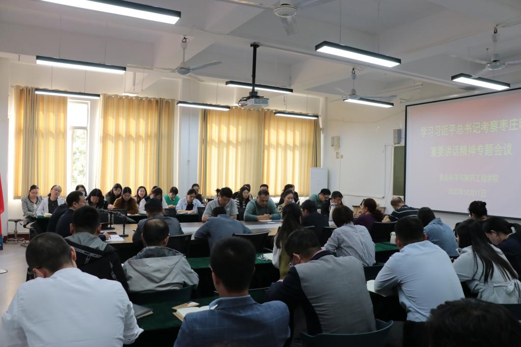 10月11日下午,bat365官网登录入口在文科楼213会议室召开全体教工会议,传达学习习近平总书记考察枣庄的重要讲话精神。学院党政领导及全体教职员工参加会议。