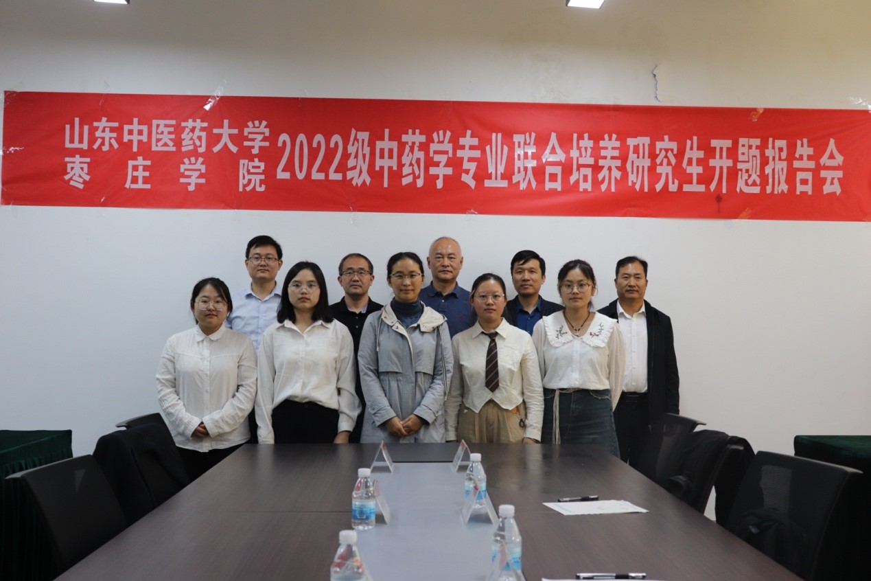 10月29日,bat365官网登录入口在文科楼213教室举办山东中医药大学-枣庄学院2022级中药学专业联合培养研究生开题报告会。会议由山东中医药大学药学院副院长刘谦教授主持,山东中医药大学药学院教授张超、华润三九(枣庄)药业有限公司总经理、高级工程师赵胜、北京中医药大学第四临床医学院科教部主任、主任医师陈曦和bat365官网登录入口硕士生导师张立华、王京龙等6名专家,对2022级4名联合研究生开题报告进行评议。学校组织部部长、科技处和研究生处处长伊文涛到会并致辞。