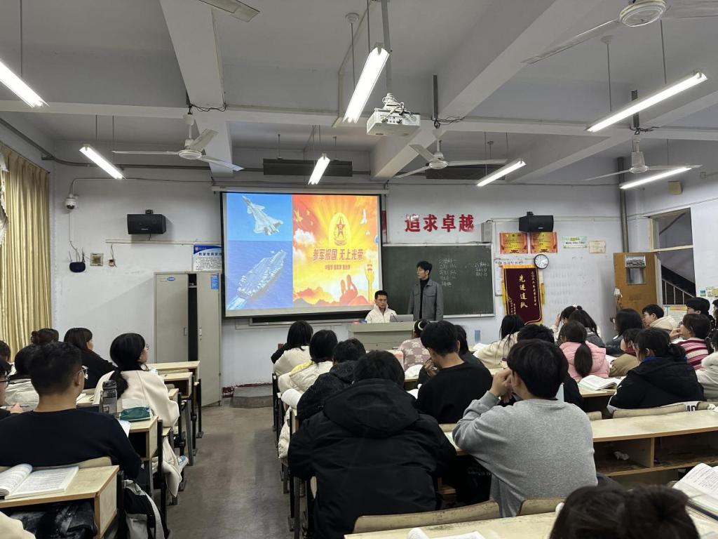 为深入贯彻落实习近平强军思想,激发广大学生的参军报国热情,营造良好的征兵工作氛围,12月4日,bat365官网登录入口在文科楼举行征兵政策宣讲会。学院辅导员、退役士兵学生代表和部分同学参加会议。