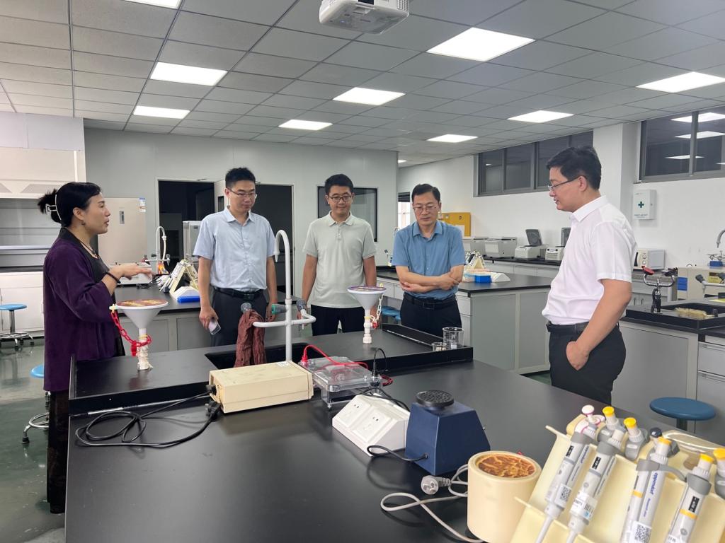 滕聿峰书记对常熟理工学院生物与食品工程学院的热情接待与工作经验的分享表示衷心感谢,介绍了bat365官网登录入口的简要情况,同时就党建、团学、考研及学生就业等情况进行了工作交流,王京龙院长围绕人才培养、学科、专业建设、产业学院运行等方面进行了交流和探讨。座谈会后实地参观了生物与食品工程学院的科研及教学实验室。